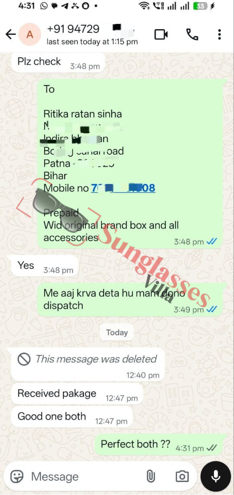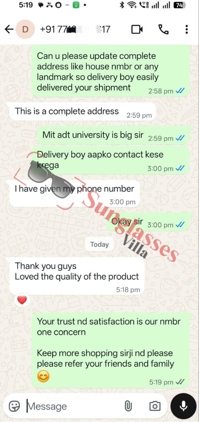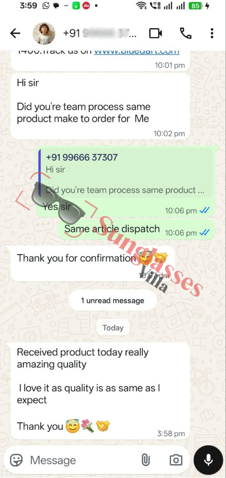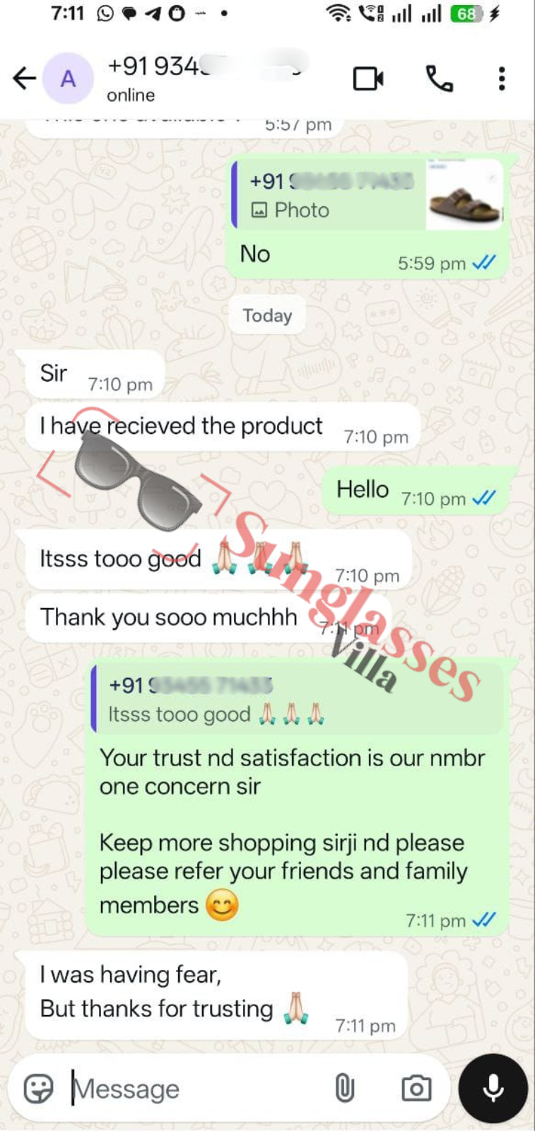 For fashionable first copy sunglasses, thousands of customers rely on Sunglasses Villa. See what Indian customers have to say about our imitation sunglasses.