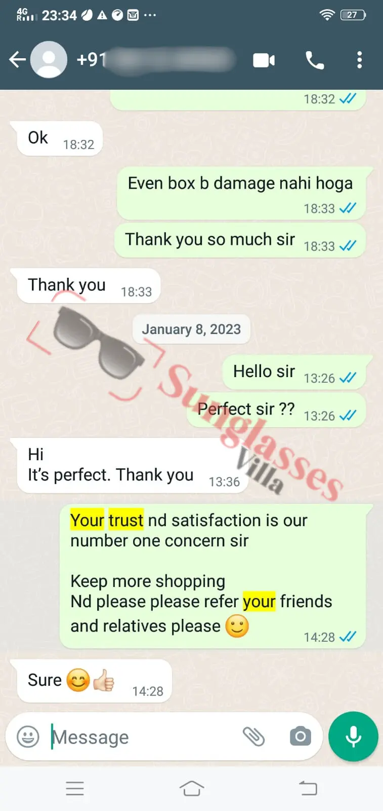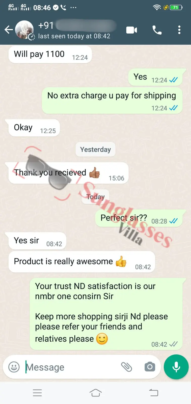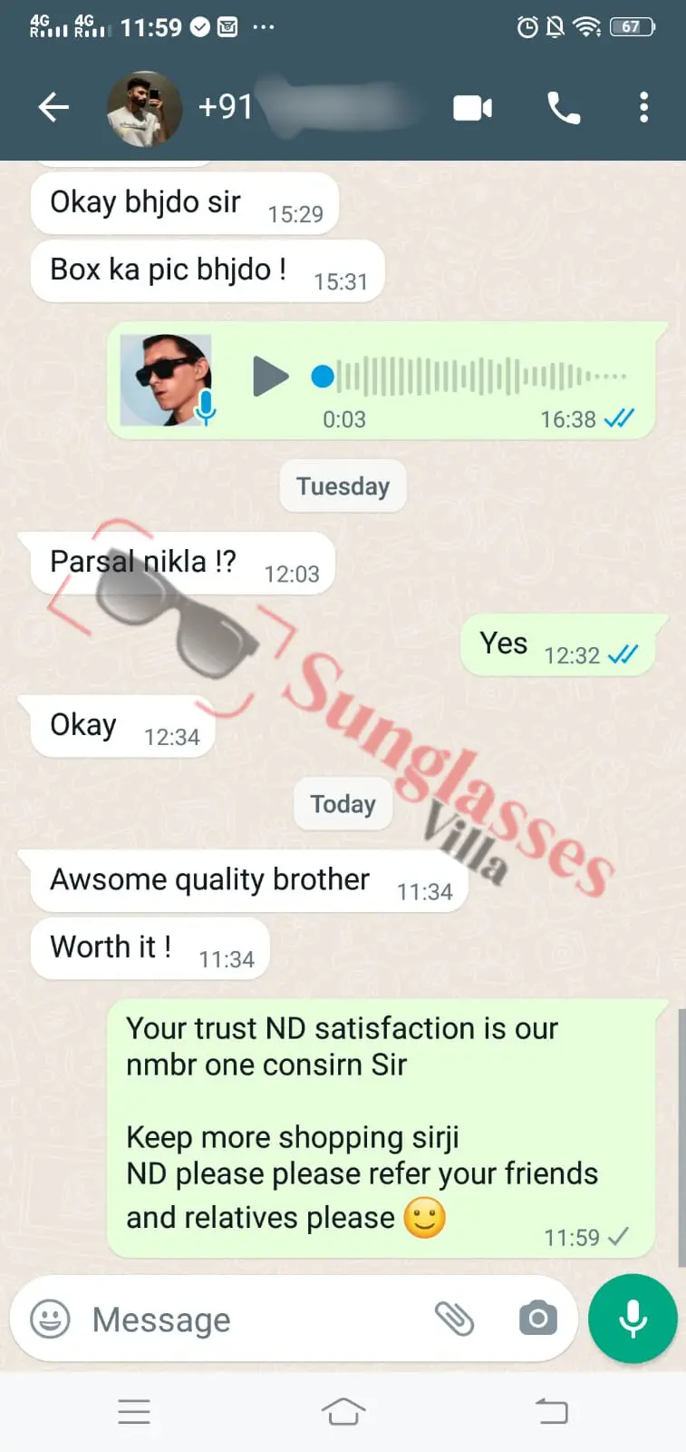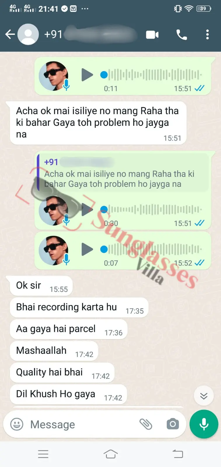 For fashionable first copy sunglasses, thousands of customers rely on Sunglasses Villa. See what Indian customers have to say about our imitation sunglasses.