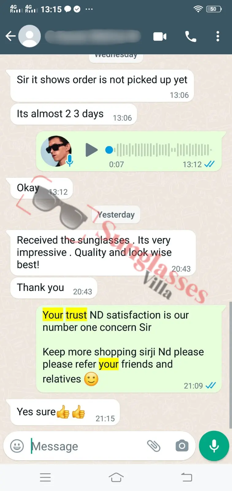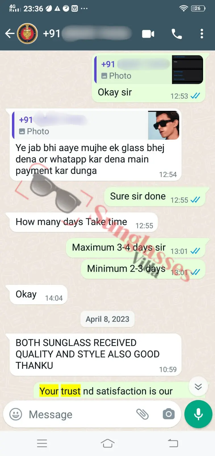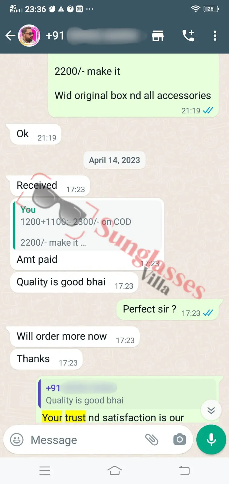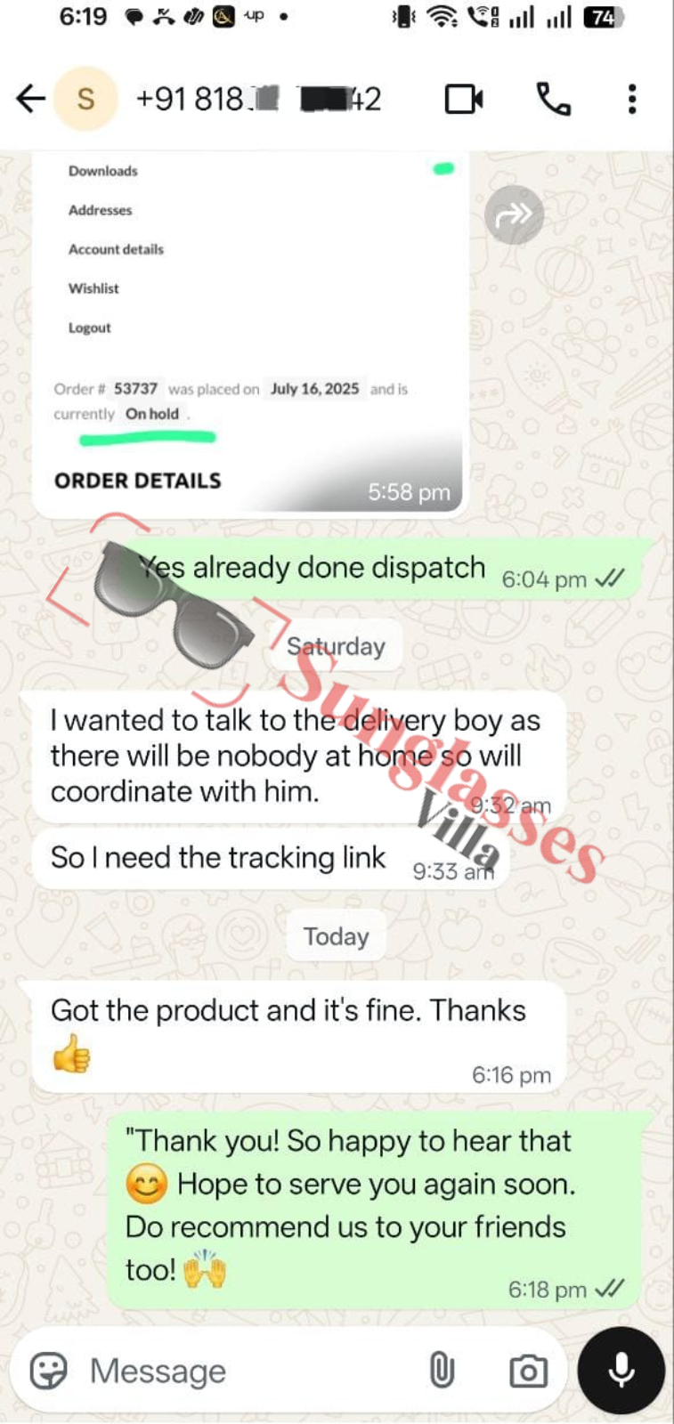 For fashionable first copy sunglasses, thousands of customers rely on Sunglasses Villa. See what Indian customers have to say about our imitation sunglasses.